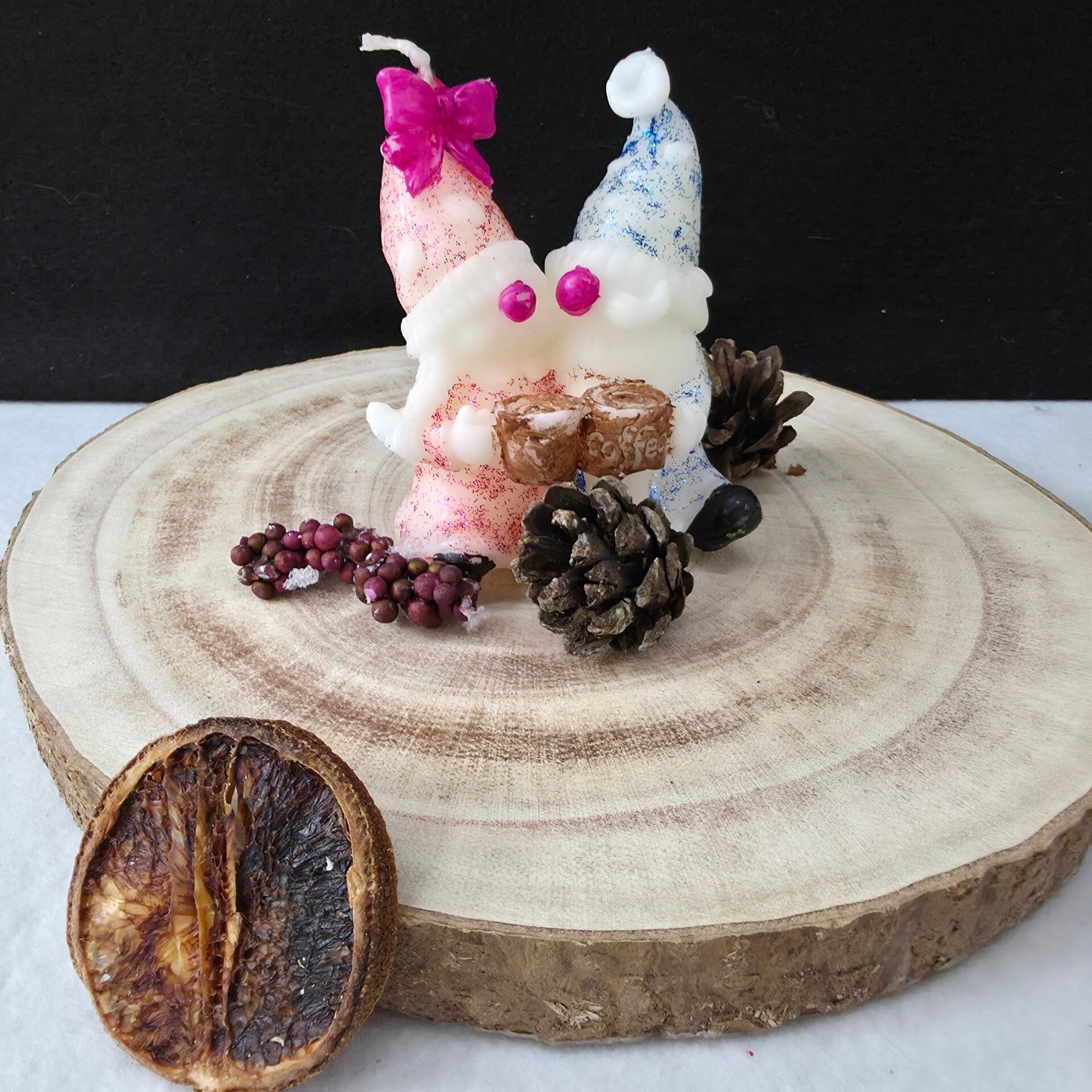 Zwei fröhliche Wichtel mit funkelnden Mützen und liebevollen Details – perfekt für die Weihnachtszeit.
